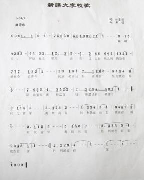 该校歌歌词源于时任新疆学院教务长、著名共产党人林基路诗作《我们正青春年少》。校歌以爱国主义精神为主旋律,以担当历史和时代责任为主题,号召青年学子继承、发扬光荣革命传统,肩负民族重任,团结一致,奋勇前进。该校歌旋律简洁明快,催人奋进,激励着一代又一代青年学子的爱国之志和报国情怀。